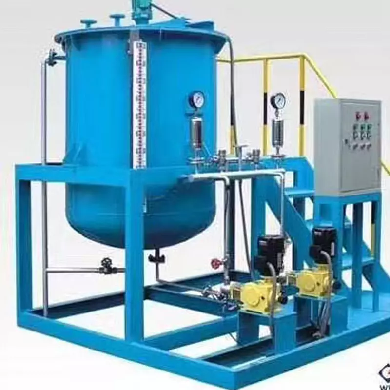 This automatic dosing product developed and produced by the dosing device is mainly used for the treatment of boiler feed water, circulating water, hydrogen addition, phosphate, etc. in power plants and factories. It can also be applied in industries such as petroleum, chemical environmental protection, and water supply systems. The unitized dosing device mainly consists of a solution tank, metering pump, filter, safety valve, check valve, pressure gauge, buffer tank, liquid level gauge, control cabinet, etc., which are integrated and installed on a single base. The user only needs to place the combined dosing device in the dosing room, connect the water inlet and outlet, and turn on the power supply to start and put it into operation. This factory-made complete set of equipment can greatly reduce the workload of design and on-site construction, and provide a reliable guarantee for the quality, safety and on-site operation of the entire machine system.